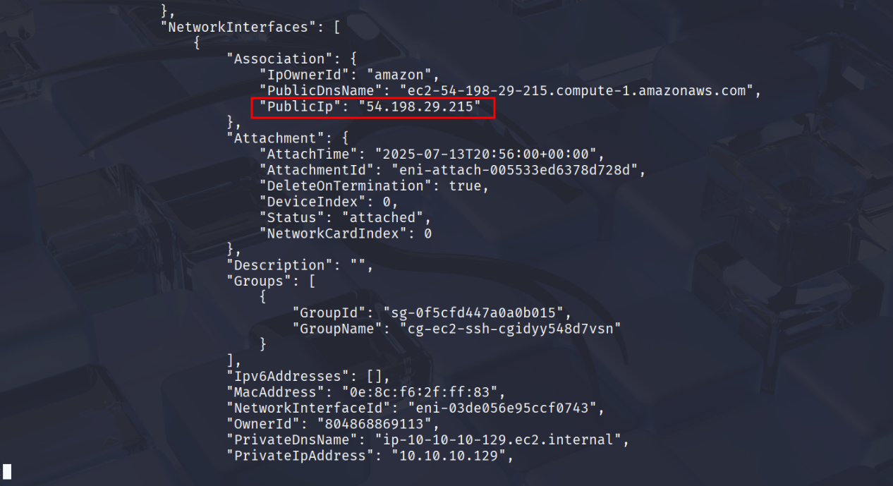 Press Enter or scroll down to see the Public IP of the EC2 instance.