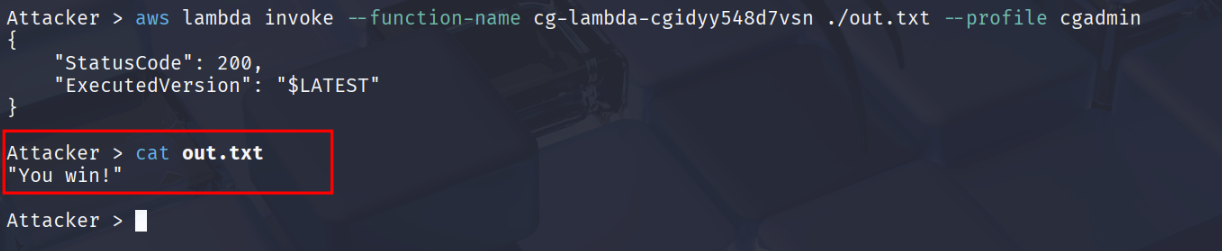 aws lambda invoke --function-name cg-lambda-cgidyy548d7vsn ./out.txt --profile cgadmin