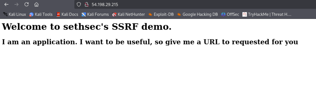 You’ll see a web application, possibly with a parameter named url that is vulnerable to SSRF